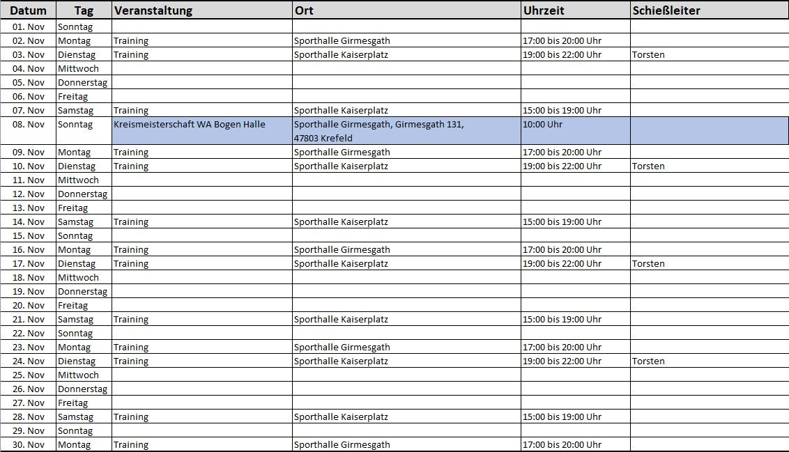 Terminübersicht